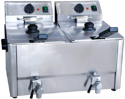 Freidoras eléctricas construidas en acero inoxidable. Termostato para regulación de temperatura.