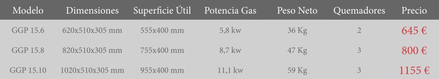 Encendido piezo eléctrico en todos los modelos.